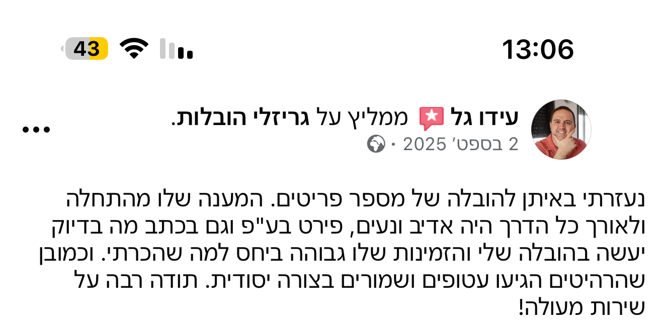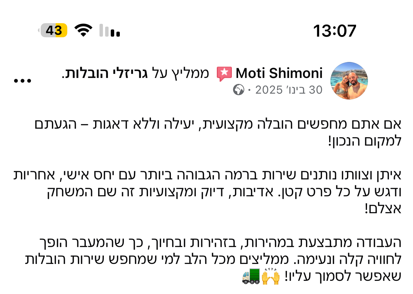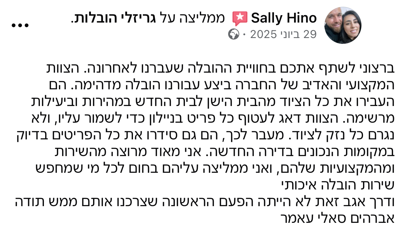 אלפי לקוחות מרוצים לא טועים. אנחנו יודעים איך לטפל בכל פריט ברגישות ובמקצועיות. כל הובלה מנוהלת תוך הקפדה על סטנדרט עבודה גבוה ואחריות מלאה.