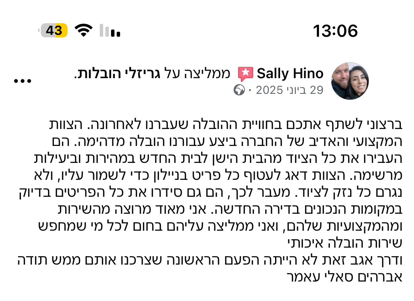 השירות שלנו מבוסס על ניסיון, מקצועיות ויחס אישי, כדי שתוכלו לעבור בראש שקט וללא דאגות.